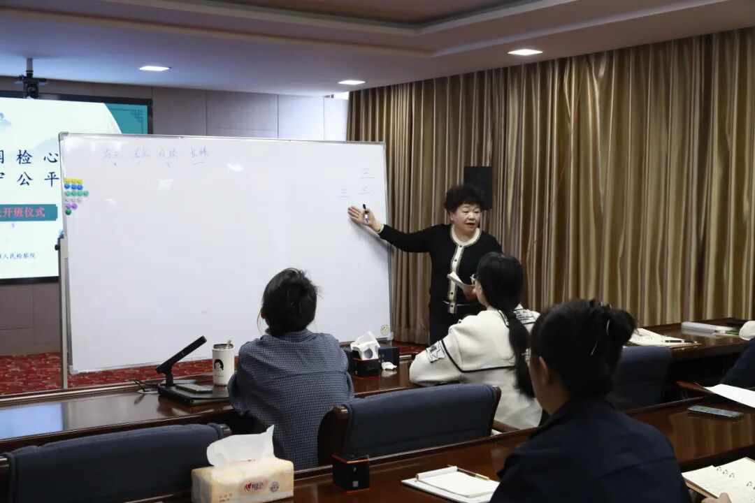 授课中,苏莉萍老师从基础笔画切入,以殷墟甲骨文为引,系统梳理汉字演变脉络:商周青铜器上的金文铭刻、秦代"书同文"政策下的小篆统一、汉代隶变的"破圆为方",直至魏晋楷书定型与草行书体的艺术升华。在实训环节,老师现场示范基本笔画书写要领,逐桌指导检察人员纠正握笔姿势,手把手教授"悬针竖""回锋撇"等技法,反复练习字体结构与章法布局。