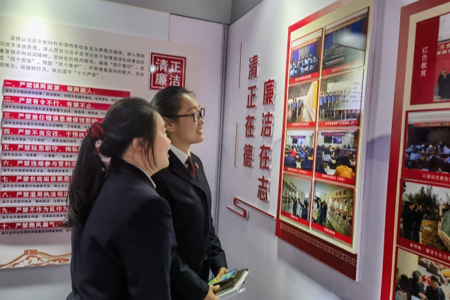 鹤壁市山城区检察院干警在廉洁文化教育基地参观。