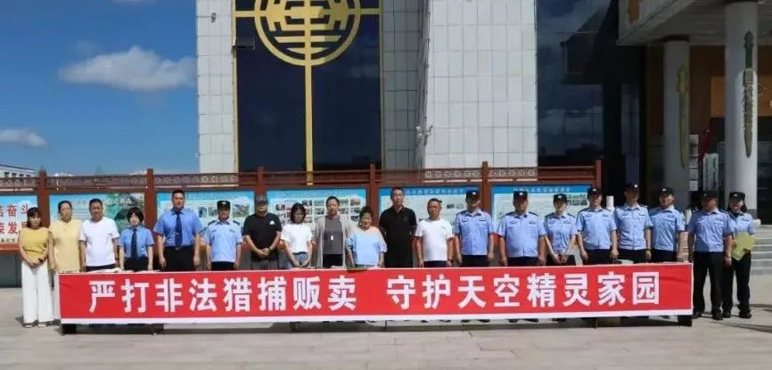 为坚决遏制非法猎捕、杀害、收购、运输、出售、食用野生鸟类等违法犯罪行为。鄂伦春自治旗检察院联合阿里河森工公司、大兴安岭森林公安局阿里河分局、鄂伦春自治旗公安局、鄂伦春自治旗市场监督管理局。于7月29日,在阿里河镇莫日根广场开展了“严厉打击非法猎捕贩卖野生鸟类专项行动。”